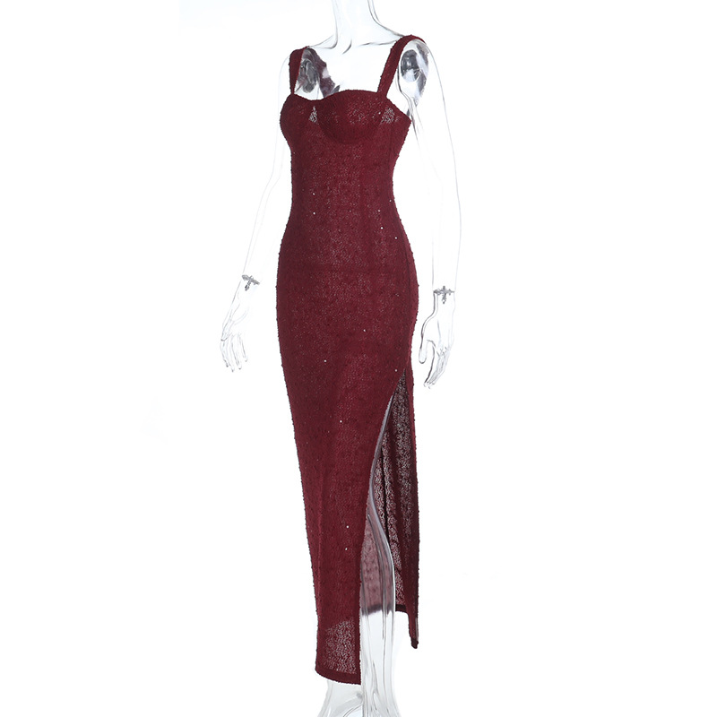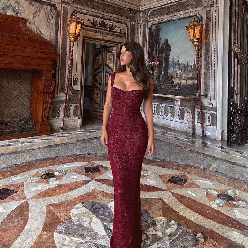 Light-luxury French-style Split Maxi Slip Dress For Parties